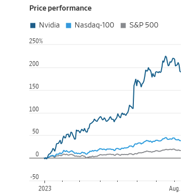 Shares of Nvidia, the graphics-chip maker at the heart of the frenzy, have nearly tripled in 2023, while the Nasdaq-100 has climbed 38% and the S&P 500 has gained 16%.