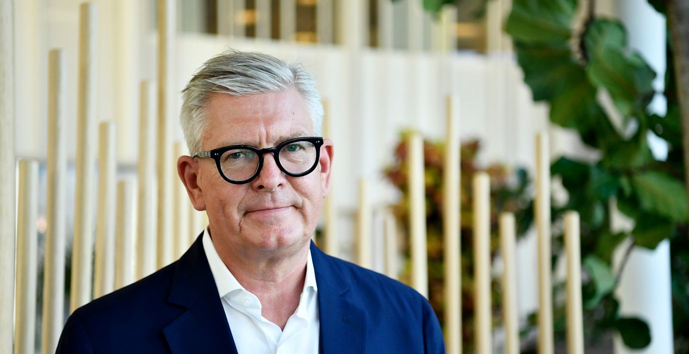 Ericsson vd Börje Ekholm intervjuas med anledning av företagets delårsrapport. (Erik Simander/TT / TT NYHETSBYRÅN)