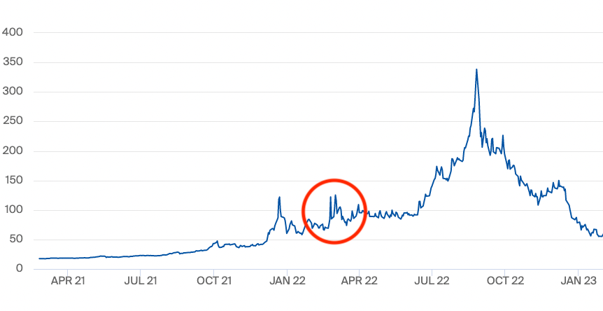 Som mest kostade en megawattimme närmare 350 euro, i slutet av augusti. I takt med att nya importvägar etablerades sjönk priset under hösten. Gaspriset har nu stabiliserat sig omkring 50 euro, vilket är ungefär samma nivå som vid slutet av 2021.