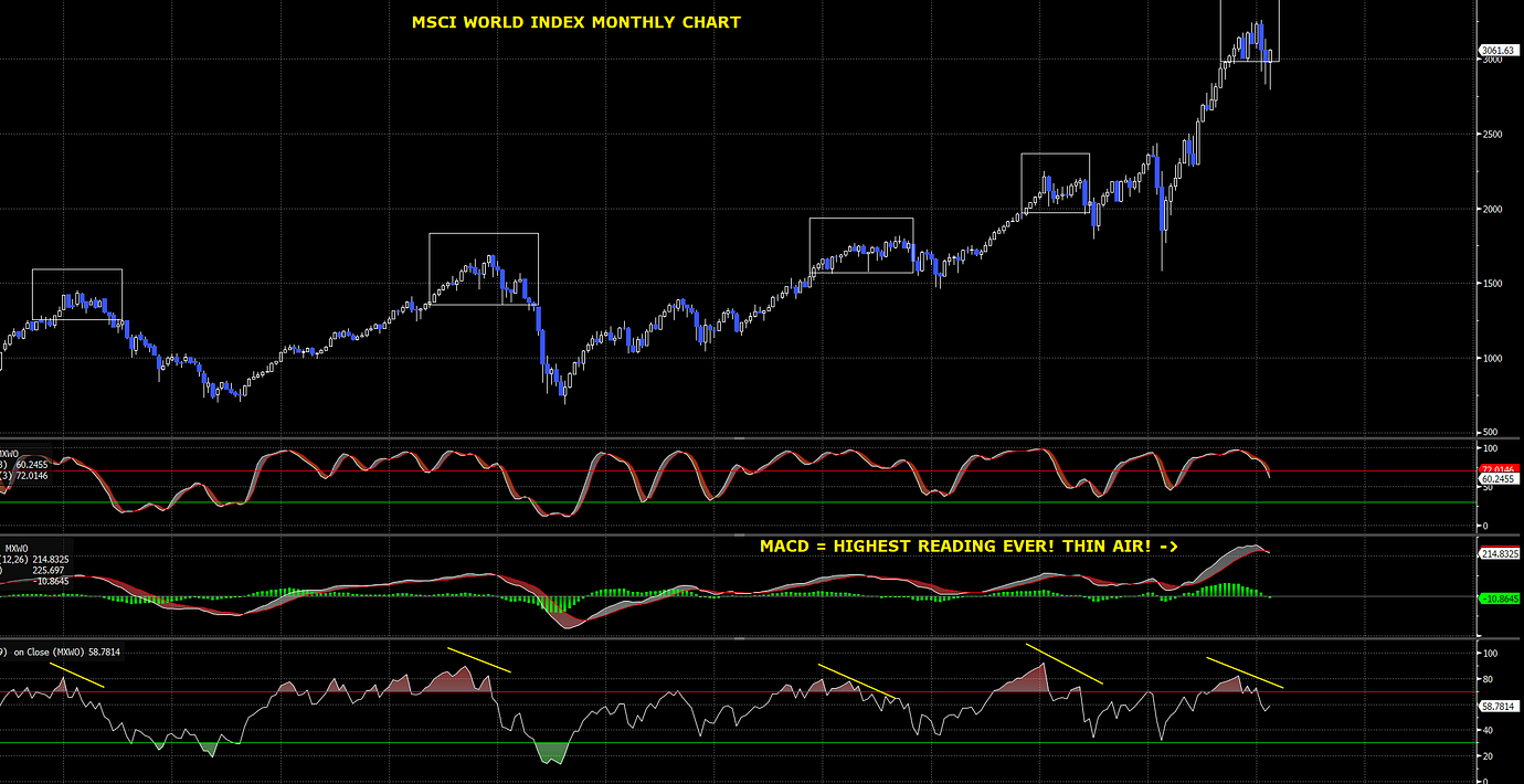 Sett till månadsdiagram på världsindex ser jag fortfarande de senaste månadernas rörelser som ett större toppbygge där börserna bör testas på nedsidan igen under andra halvåret. Frågan är dock högt det går innan dess...