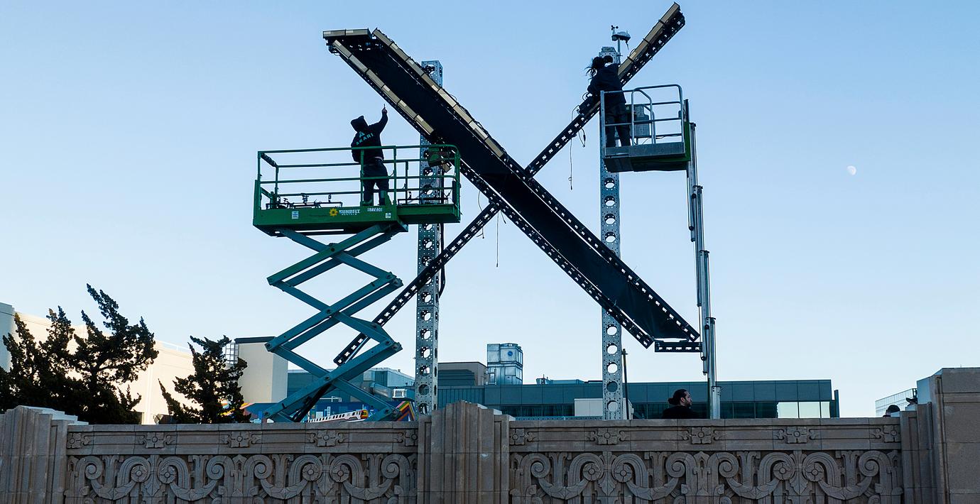 Elon Musks nya skylt för bolaget X, före detta Twitter, har tagits ned från taket på sociala medier-jättens högkvarter i San Francisco. Det skriver Reuters.