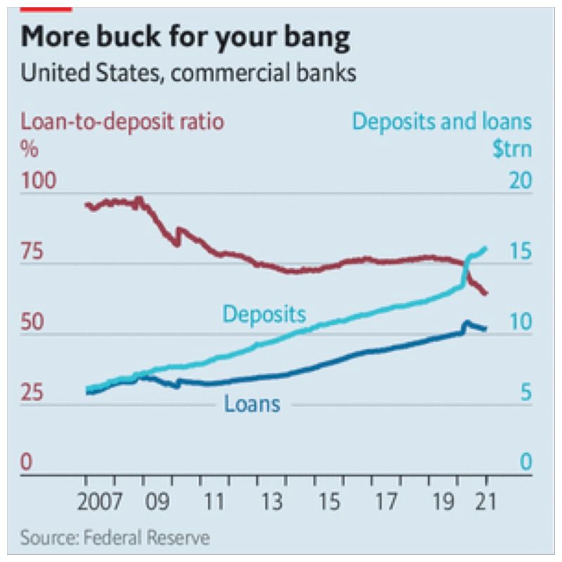 But this earnings season has also revealed how sensible rules can go awry in bizarre times. Banks are usually keen to amass customer deposits. They are cheap sources of funding; the more deposits a bank holds, the more it can lend. Over the past year, monetary easing by the Federal Reserve has injected vast amounts of cash into the banking system and led deposits to balloon. In 2020 an additional $580bn or so piled up at JPMorgan, and $360bn at Bank of America. On one earnings call an analyst called these deposit mountains an “embarrassment of money for the industry”.