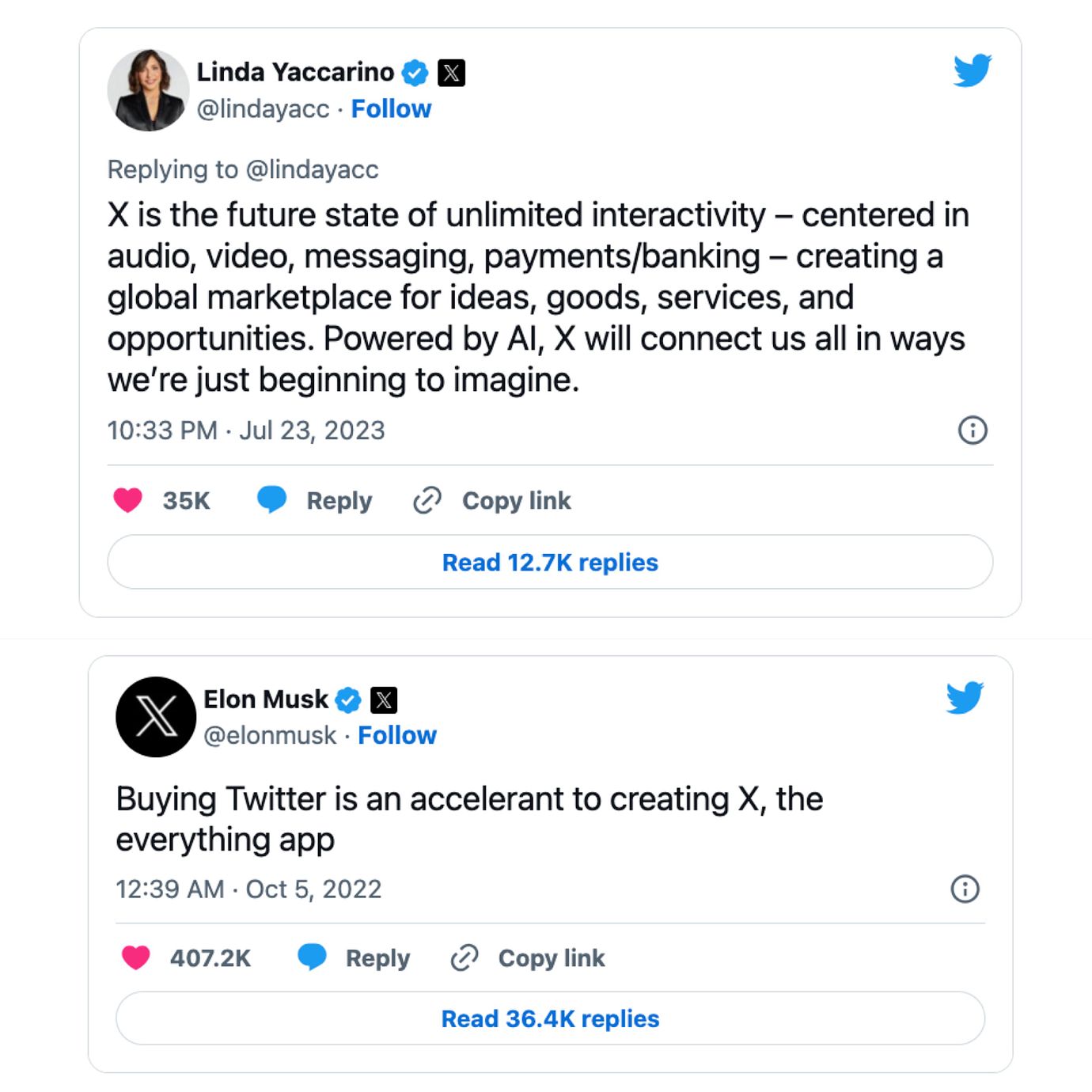 In messages posted in support of Musk’s overhaul, Twitter Chief Executive Officer Linda Yaccarino said X would include fintech features such as payments and banking. Twitter has already snagged money-transmitter licenses in four US states — Arizona, Michigan, Missouri and New Hampshire.