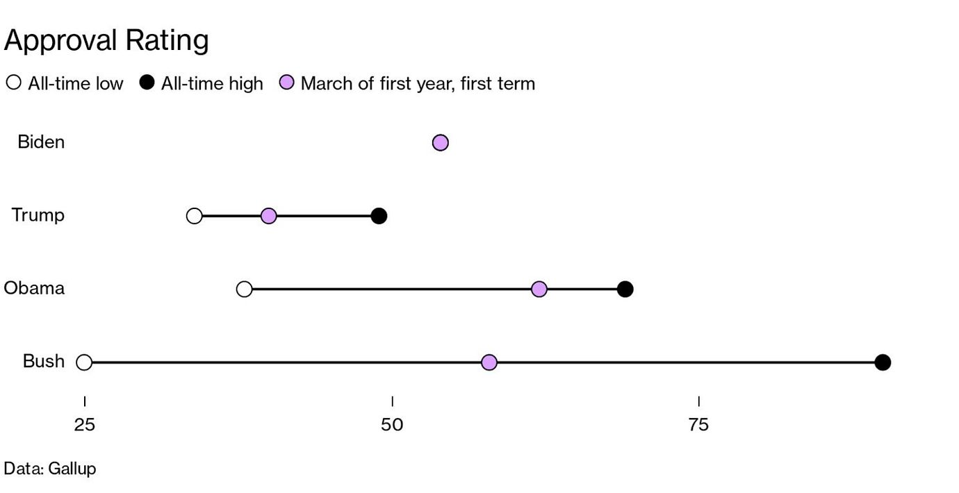 The challenges remain stark. Vaccine hesitancy may snarl efforts to end the pandemic. If Biden’s next big bills don’t pass Congress, his sweeping agenda may not be very memorable. Republicans intend to keep hammering him on immigration, and he’ll only face more foreign policy hurdles in confronting China, Russia, and Iran and pulling troops out of Afghanistan.