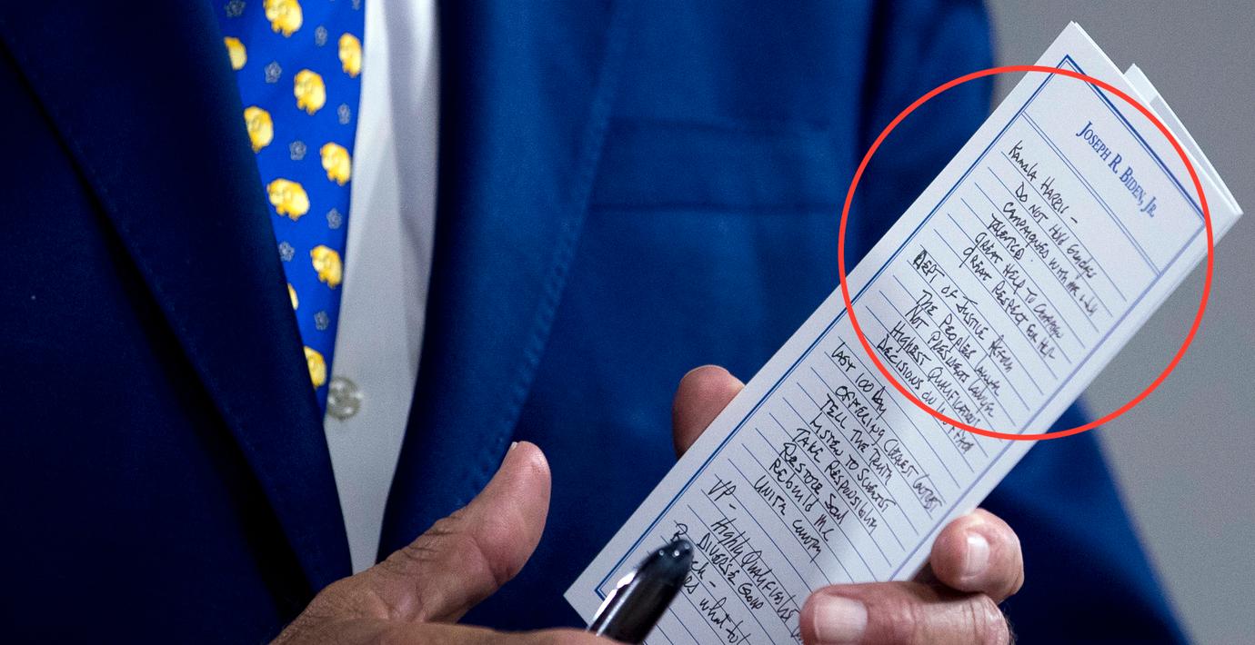 Bilden avslöjar Joe Bidens talepunkter om Kamala Harris