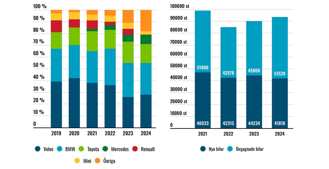 2024 var den svenska totalmarknaden för nya bilar nästan 20% lägre än genomsnittet det senaste decenniet. Marknaden bedöms nu nått sin bottennivå och en gradvis återhämtning väntas.
