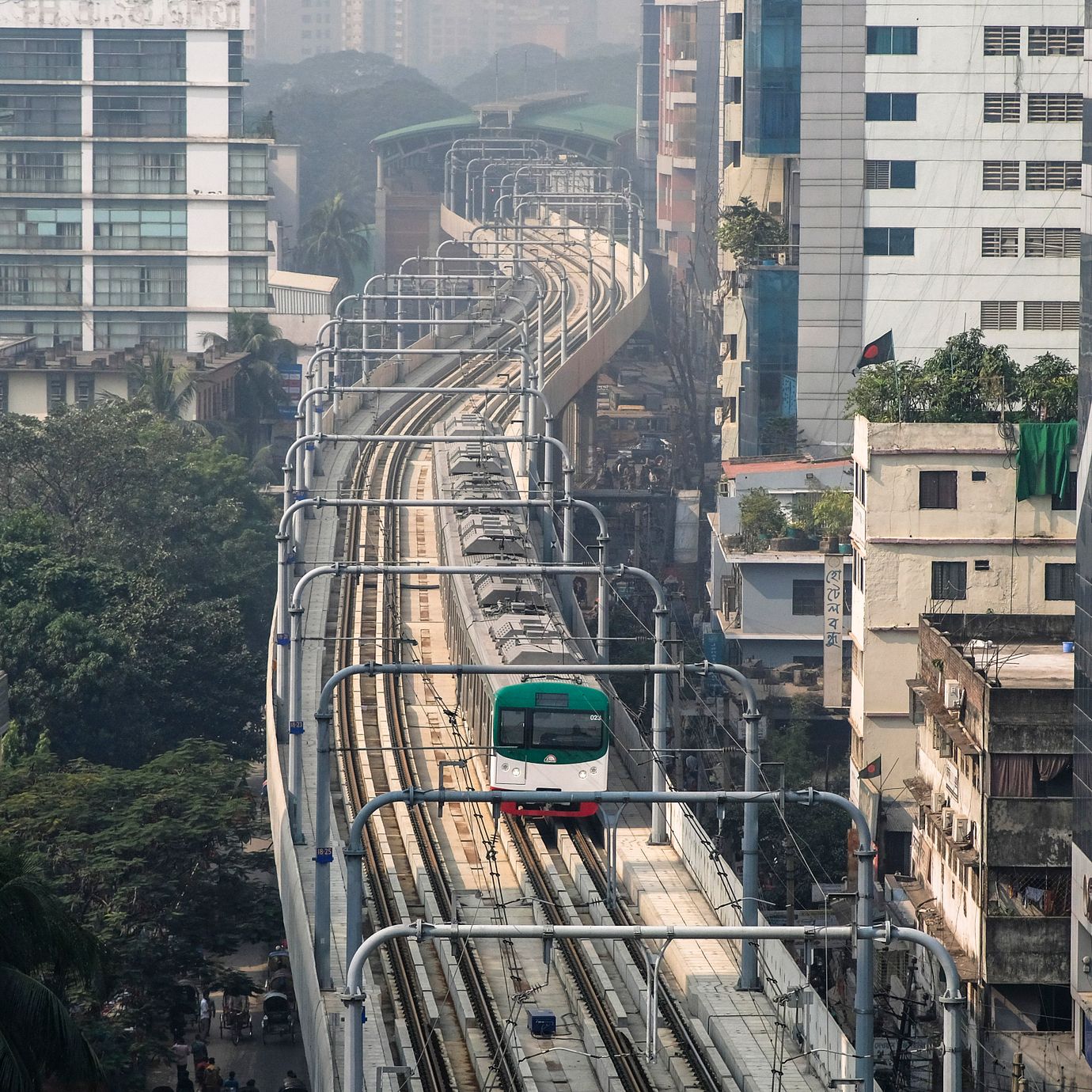 Metro rail speeds along the Paltan-Motijheel route in Dhaka, Bangladesh, Dec. 18, 2023.  (Mahmud Hossain Opu / AP)
