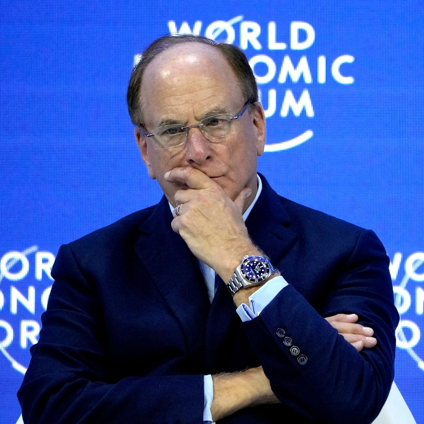 Laurence D. Fink, Chairman and Chief Executive Officer BlackRock attends a panel at the World Economic Forum in Davos, Switzerland Tuesday, Jan. 17, 2023.  (Markus Schreiber / AP)