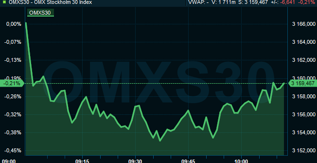 BÖRSEN: NIBE OCH SKF I TÄTEN FÖR NEDGÅNG, OMXS30 -0,2%
