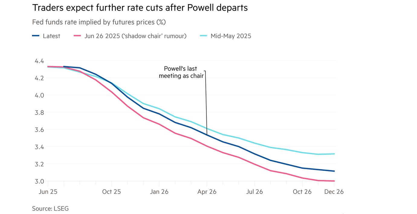 It only works if the central bank’s jawboning is credible — but investors are already listening. They have responded to the shadow Fed chair rumours by pricing in more rate cuts, albeit fewer than Trump would like.