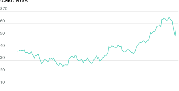 That is, it did until late last month, when Chipotle reported second-quarter results . Although its earnings per share of 33 cents, revenue of $3 billion, and same-store sales above 11% topped analysts’ estimates, as usual, the company’s post-report pop soon fizzled. Shares, at a recent $54.32, are down some 13% over the past month, following Chipotle’s 50-to-1 stock split.