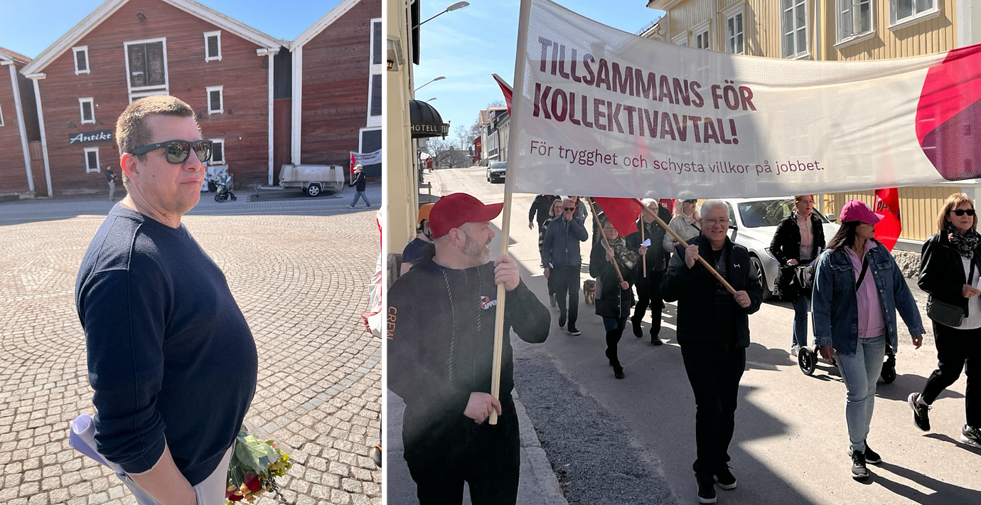 “Tillsammans för kollektivavtal” står det på banderollen för fackförbundet Pappers.