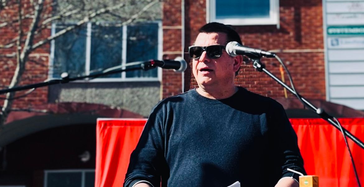 Tillsammans med två kollegor, några tältstolar och en kaffetermos håller Stefan Leiding ställningarna. Omsätter 1 maj-tågens plakat och slagord i praktiken, om man så vill.