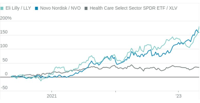 A new class of obesity ans diabetes drugs have helped Lily and Novo shares outperform.