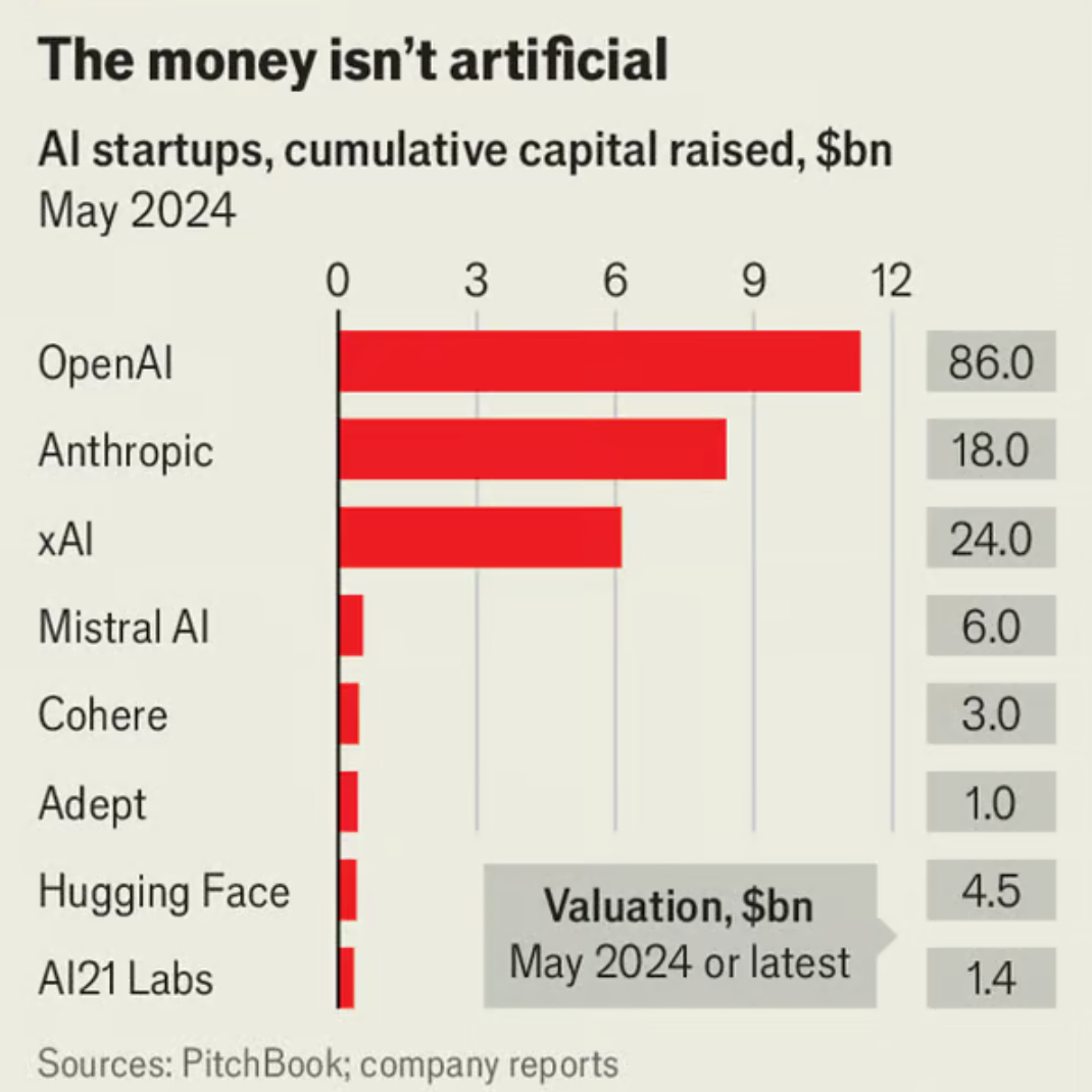Every day seems to bring fresh bets on artificial intelligence (AI). In the past few weeks CoreWeave, an AI cloud-computing company, and H, a French AI startup, have raised hefty sums of money. On May 26th it was Elon Musk’s turn. The tech billionaire’s startup, christened XAI, said it had raised $6bn at a valuation of $24bn. Investors include Silicon Valley stalwarts such as Sequoia Capital and Andreessen Horowitz, two venture-capital (VC) giants, and an investment fund with ties to the Saudi royal family. Their backing puts XAI’s firepower in the big leagues, alongside model-builders such as OpenAI, the creator of ChatGPT, and Anthropic (see chart). Can Mr Musk compete with the AI superstars?
