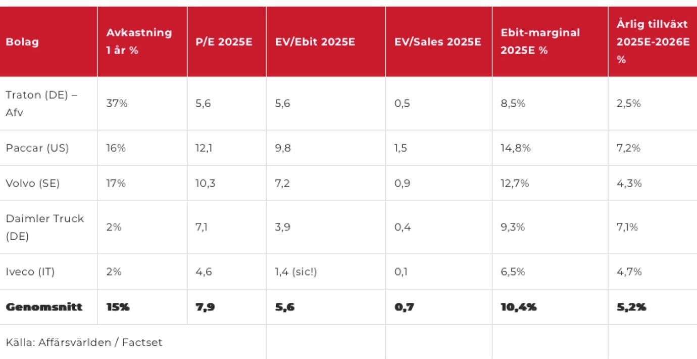 Så värderas andra lastbilsjättar
