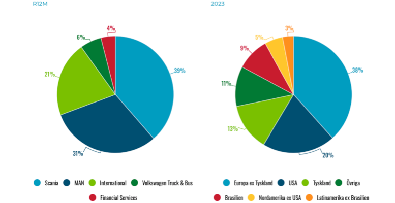 • Nyförsäljning av lastbilar och bussar och till en mindre del även större skåpbilar. Traton säljer även begagnade fordon som tidigare leasats ut till kunder.