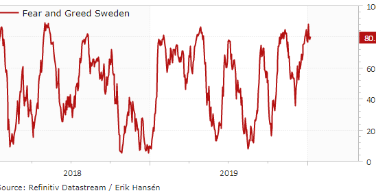 Erik Hansén har tagit fram en Fear and Greed-indikator över Stockholmsbörsen och den visar en stor portion girighet, vilket ger svagare utveckling på kort tid.