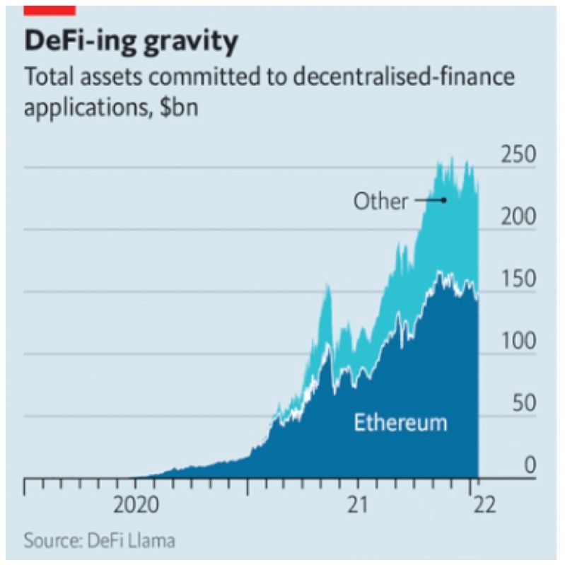The idea behind DeFi is that blockchains — databases distributed over many computers and kept secure by cryptography — can help replace centralised intermediaries like global banks and tech platforms. The value of assets stored in this nascent financial system has climbed from less than $1bn at the start of 2020 to more than $200bn today.