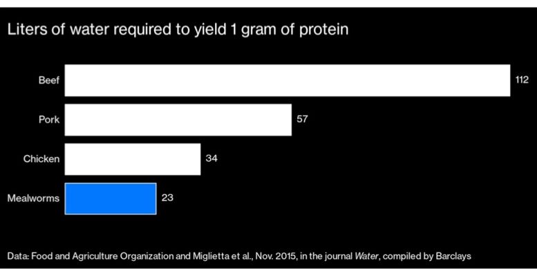 The potential market got a big lift this year when the European Union approved locusts and mealworms for human consumption, and EU regulators say they’re examining applications for almost a dozen other species. Barclays Plc predicts annual sales of edible bugs will grow to $8 billion by 2030, from less than $1 billion in 2019 — a potential challenge to the $30 billion plant-based faux-meat market dominated by Impossible Foods Inc. and Beyond Meat Inc. “Pound for pound, insects are more efficient than livestock and need less space to grow than soy,” says Mohammed Ashour, chief executive officer of Aspire Food Group, which is building an 11-story vertical cricket farm in Ontario. “And insects are one of the easiest things to make delicious. They take on the flavor of whatever you feed them.”