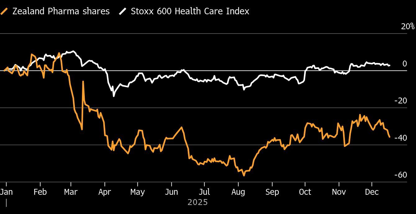 Zealand Pharma A/S shares have slumped 35% this year as investors await crucial study data for its experimental weight-loss drug petrelintide, which is being co-developed with Roche Holding AG. The drug mimics a gut hormone called amylin, which slows digestion and makes people feel full for longer. Drugs using this approach are thought to be a gentler option than medicines like Eli Lilly & Co.’s Zepbound and Novo Nordisk A/S’s Wegovy, which can have side effects like nausea and vomiting.