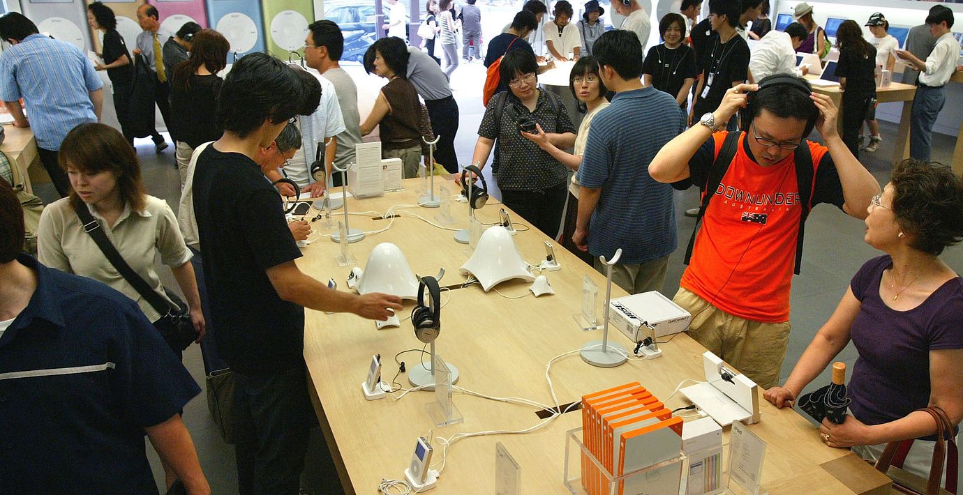 Trängsel i Apples butik när Ipoden lanserades 2004. (SHIZUO KAMBAYASHI / Ap)