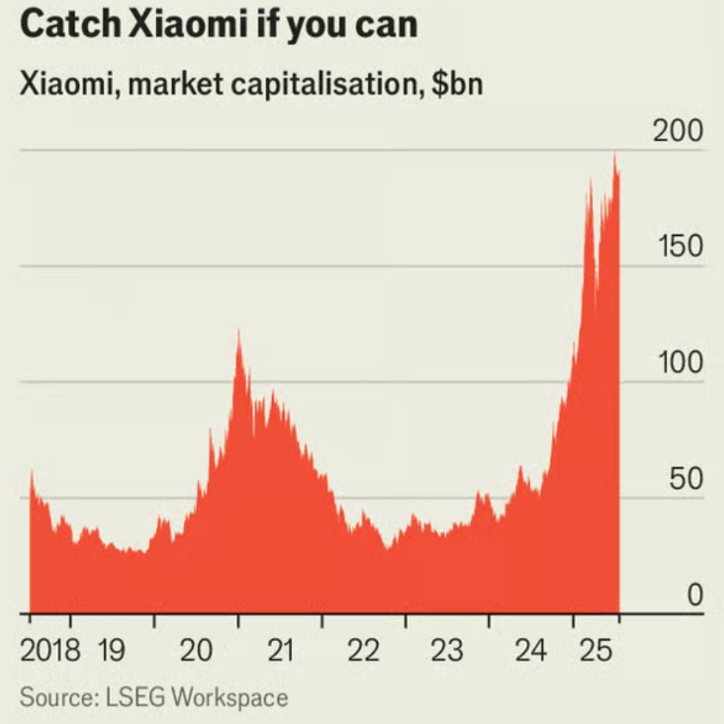 Med en fyrdubblad värdering sedan 2024 och planer på 10 000 butiker utomlands satsar Xiaomi på global dominans, skriver The Economist.