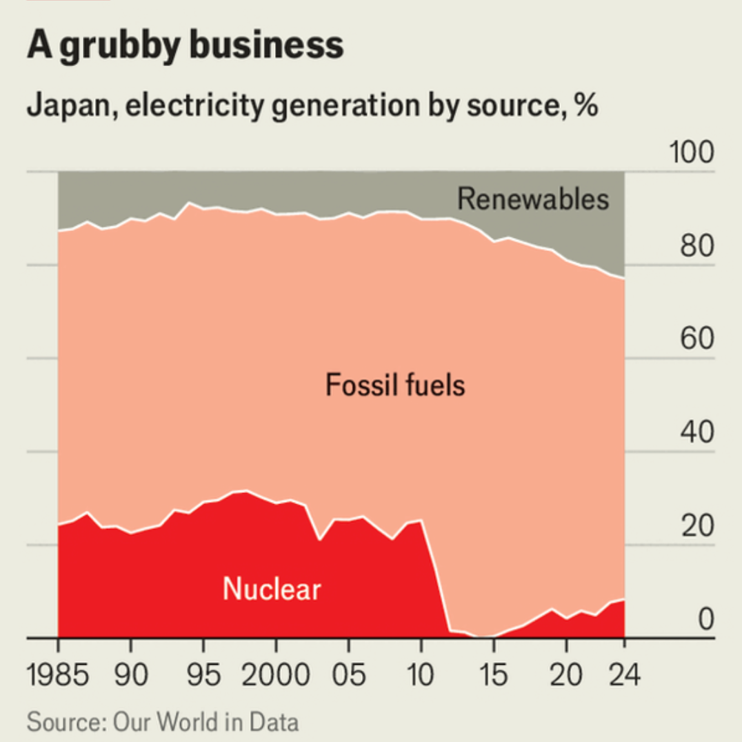 Instead of accelerating, the expansion of renewables is slowing. In 2024 new wind and solar construction fell to the feeblest pace for 17 years. Last summer Mitsubishi, a conglomerate, pulled out of three big offshore wind projects because of rising construction costs. The government is scaling back subsidies and imposing new regulations, especially for large-scale solar. Takaichi Sanae, Japan’s hawkish new prime minister, opposes “further covering our beautiful land with foreign-made [ie, Chinese] solar panels”.