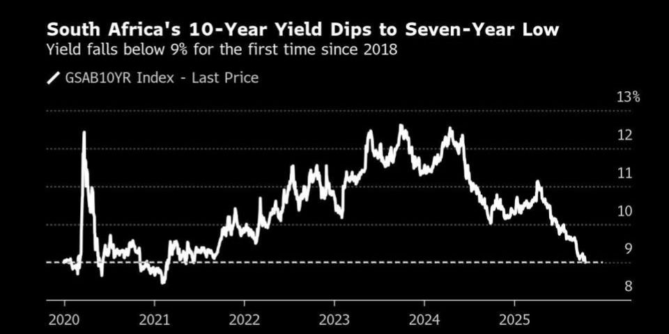 South Africa’s FTSE/JSE Africa All Shares Index has gained more than 30% in 2025. The rand is near a one-year high, and the 10-year government bond yield recently fell below 9% for the first time in more than seven years. Slowing inflation that’s allowed the country’s central bank to cut interest rates is also boosting market sentiment.