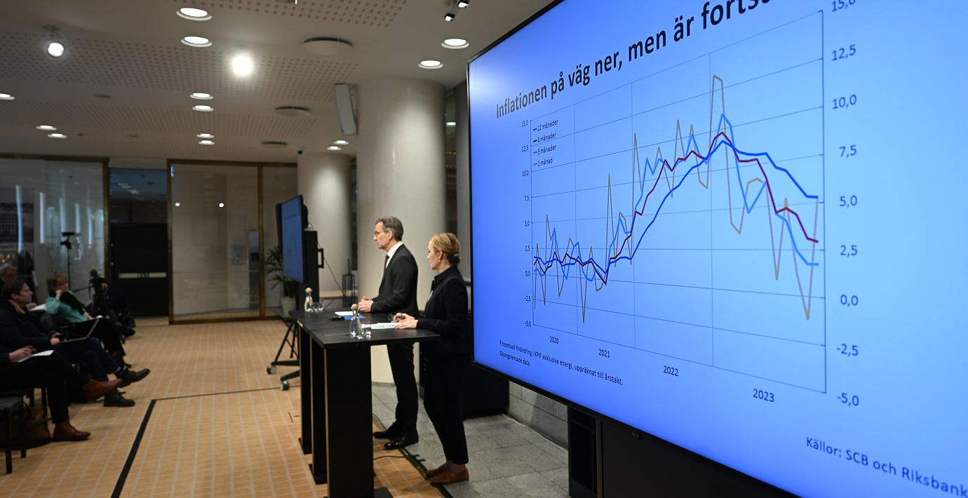 Inflationstakten backade mer än väntat i februari och ligger nu åter nära Riksbankens mål. Därmed ligger vägen öppen för att sänka räntan i maj eller juni – vilket borde bli en omedelbar injektion för ekonomin, skriver DN:s Carl Johan von Seth. Riksbanken kan dessutom av flera skäl tvingas ta i mer än både ECB och Fed under året, enligt Johan Carlström på SvD: ”Den mest uppenbara är svenskarnas räntekänslighet”.