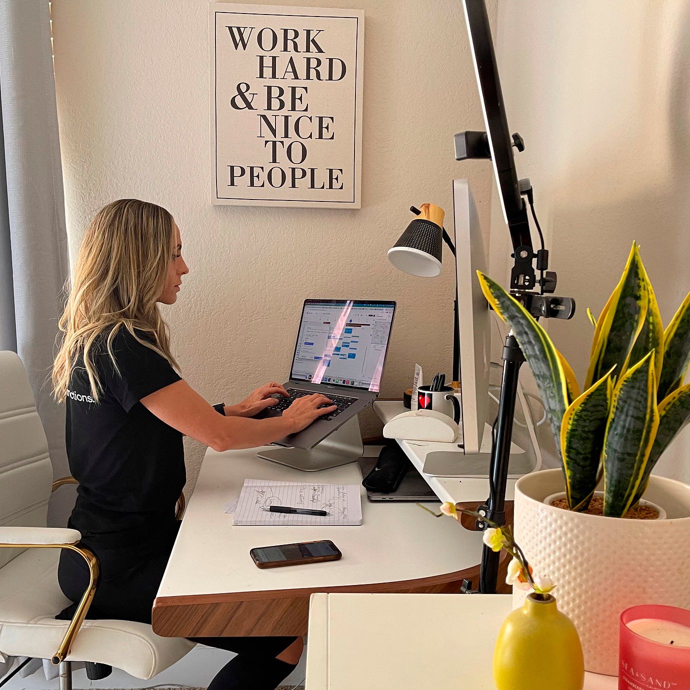 In this photo provided by Kelly Soderlund, shows Kelly working remotely from her home in Walnut Creek, Calif., Thursday, Sept. 2, 2021. (Kelly Soderlund / TT NYHETSBYRÅN)