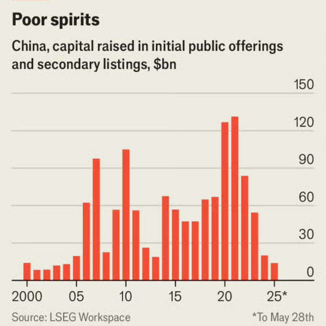Could a restart on the mainland follow? Exchanges in Shanghai and Shenzhen have deep-rooted problems that lead to over-exuberance followed by languor. In 2022 Chinese IPOs raised a record, world-topping $81bn. That reflected a central-government plan which encouraged tech firms, especially in favoured fields such as chipmaking, to list within the country. Leaders’ enthusiasm then waned in 2023 as stocks tumbled. They focused instead on liquidity in existing listings, fearing new offerings might reduce it and drive down valuations. In 2024 only 100 firms went public, the fewest for at least a decade.
