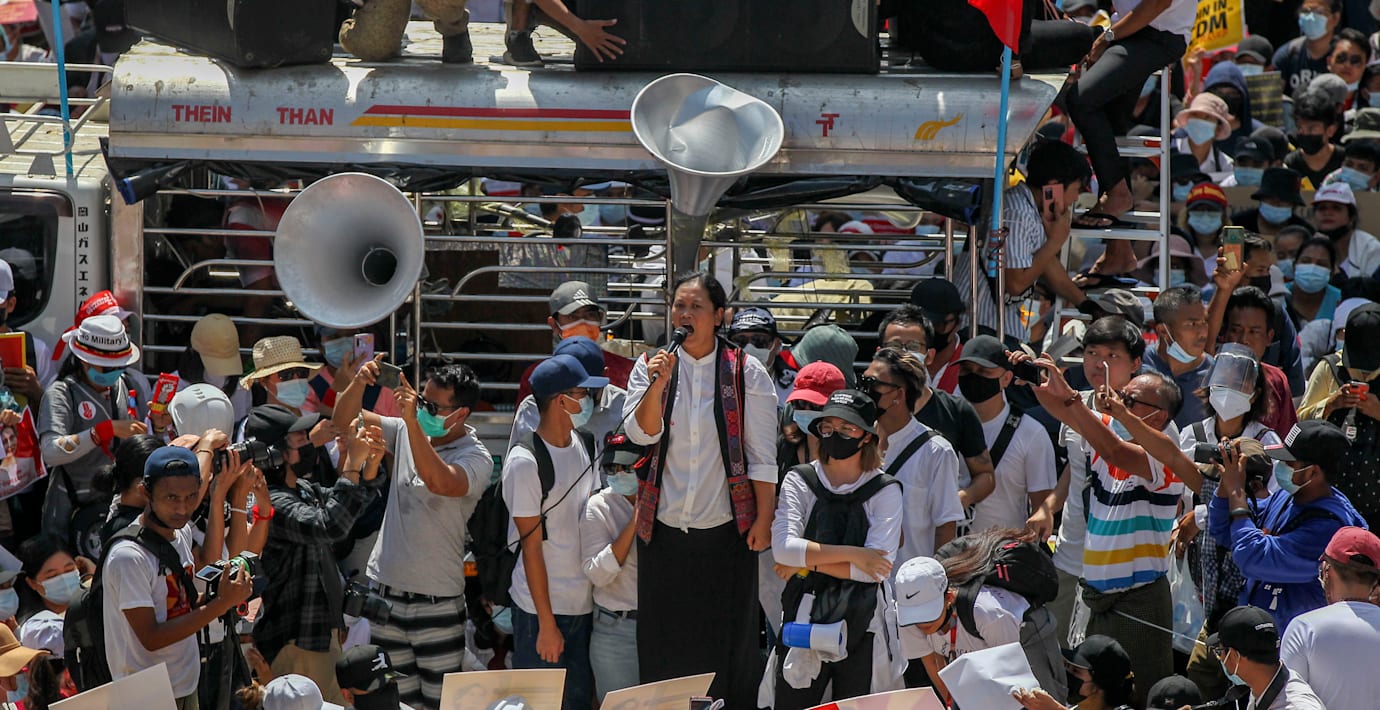 Hundratusen i protest mot militären i Myanmar
