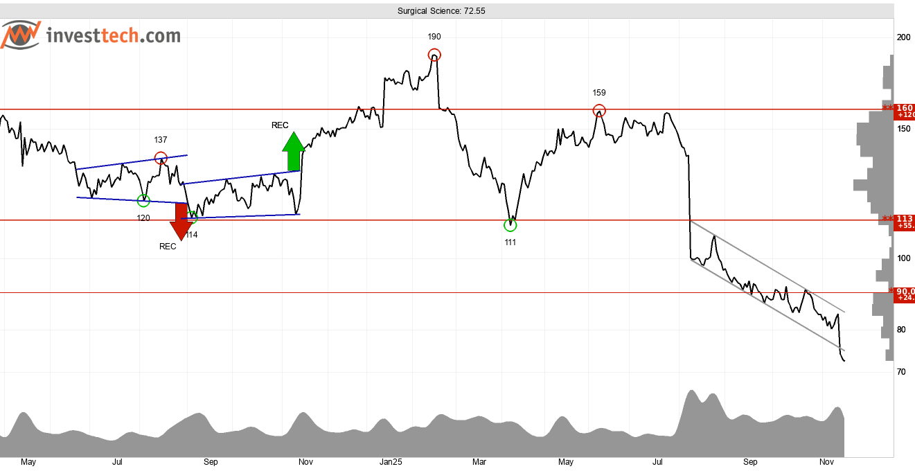 Illavarslande trend i Surgical Science när börsen testar stöd