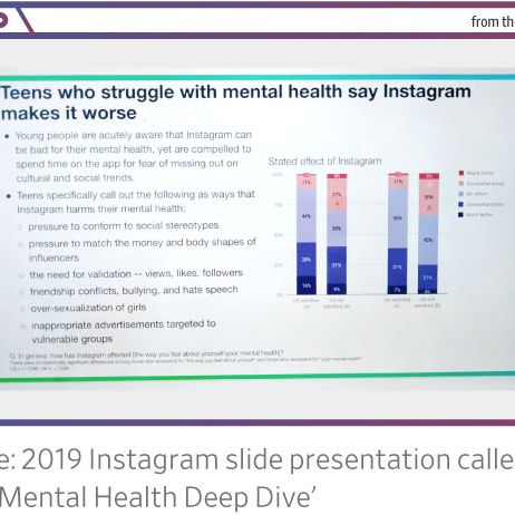 “Teens told us that they don’t like the amount of time they spend on the app but feel like they have to be present,” an Instagram research manager explained to colleagues, according to the documents. “They often feel ‘addicted’ and know that what they’re seeing is bad for their mental health but feel unable to stop themselves.”