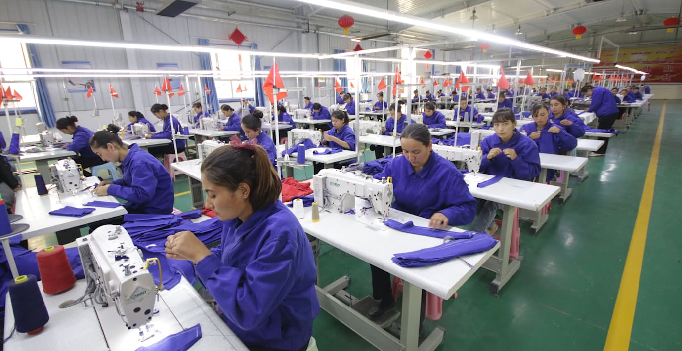 Arbetare i en Xinjiang-fabrik, 2019. (Shutterstock)