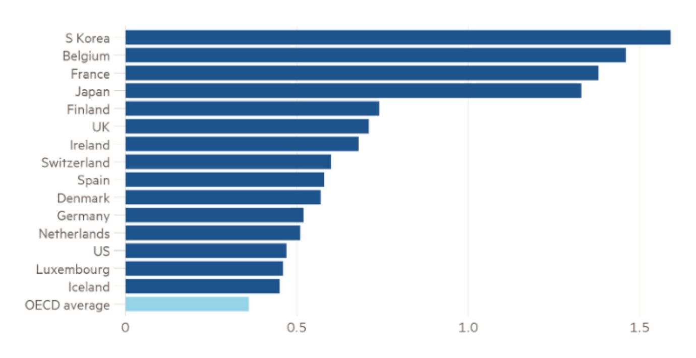 Sweden, Canada, Australia and New Zealand are among the countries to have scrapped them completely. The OECD’s most recent comparative study, published in 2021, found inheritance taxes in 2019 accounted for just 0.5 per cent of total tax revenues on average across the countries that levy such taxes, down from 1.1 per cent in 1965.
