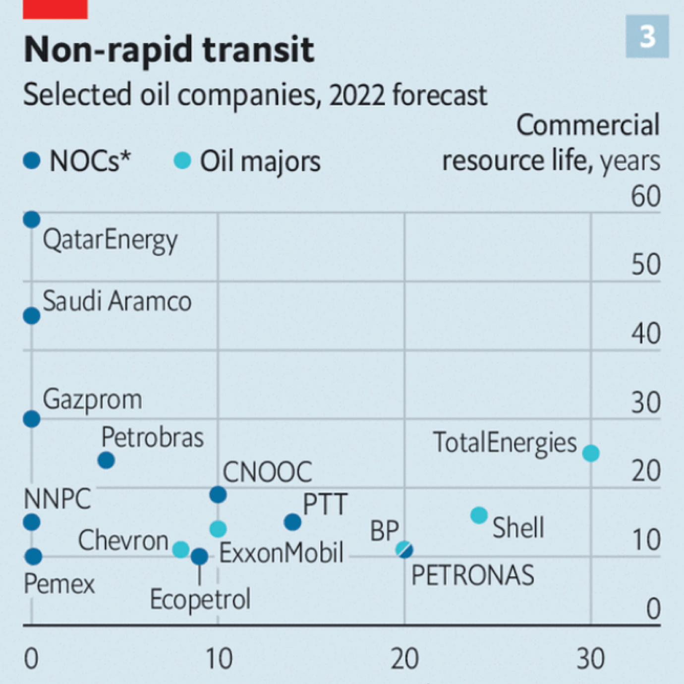The most significant category sits somewhere in the middle. These are companies, mostly in the Gulf and Russia, which are blessed with low-cost, low-carbon and long-lived reserves that will outlast both less well-endowed NOCS and the majors. They will keep pumping for years, even decades, to come. But some of them are trying to do it more cleanly.