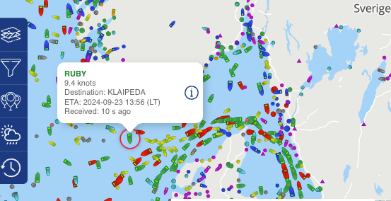 Fartyget ändrar kurs – på väg ut i Nordsjön