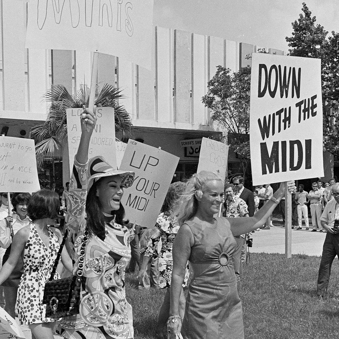 Mini-skirted women march in protest of the midi skirt, July 13, 1970, in Miami, Fla. (JIM KERLIN / AP)