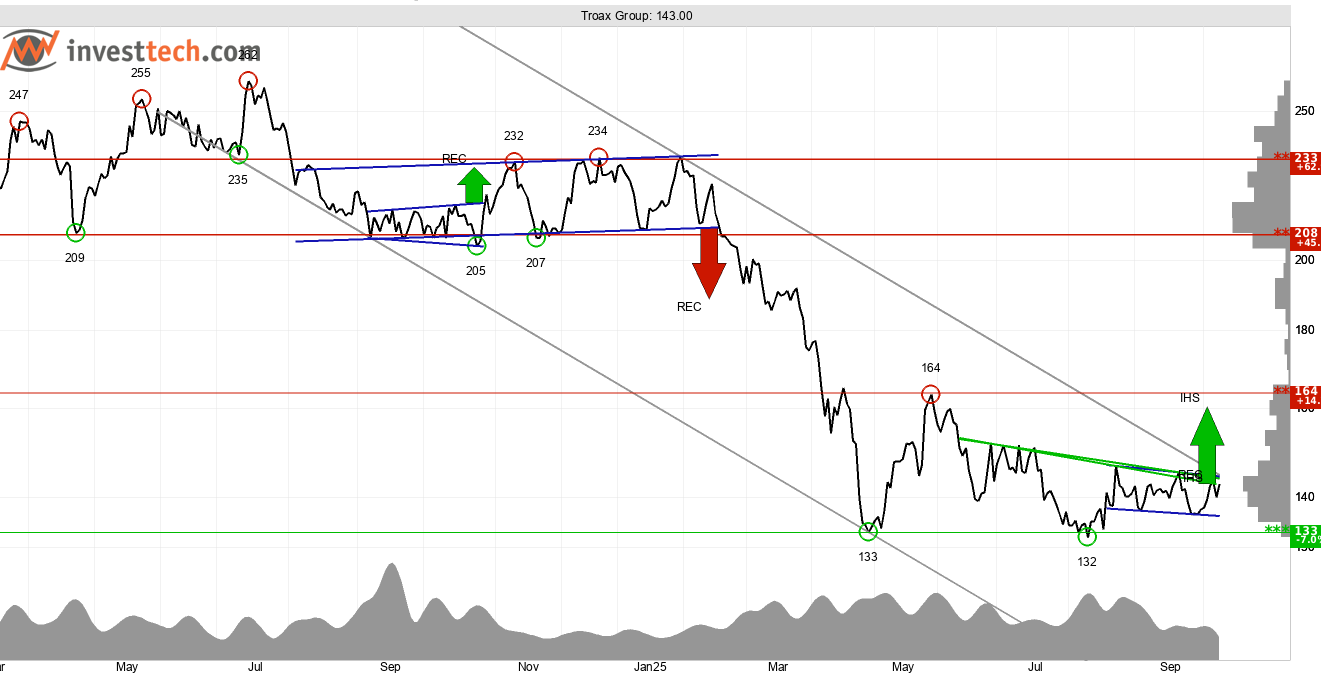 Troax Group är ett svenskt industribolag som utvecklar och tillverkar nätbaserade säkerhets- och avgränsningslösningar för industri-, lager- och logistikmiljöer. Bolagets aktie som handlas på Stockholmsbörsens large cap-lista har haft en dyster resa efter att ha toppat intill 260 kronor i juli 2024. Investtechs algoritmer har identifierat en fallande trend i grafen på medellång sikt.