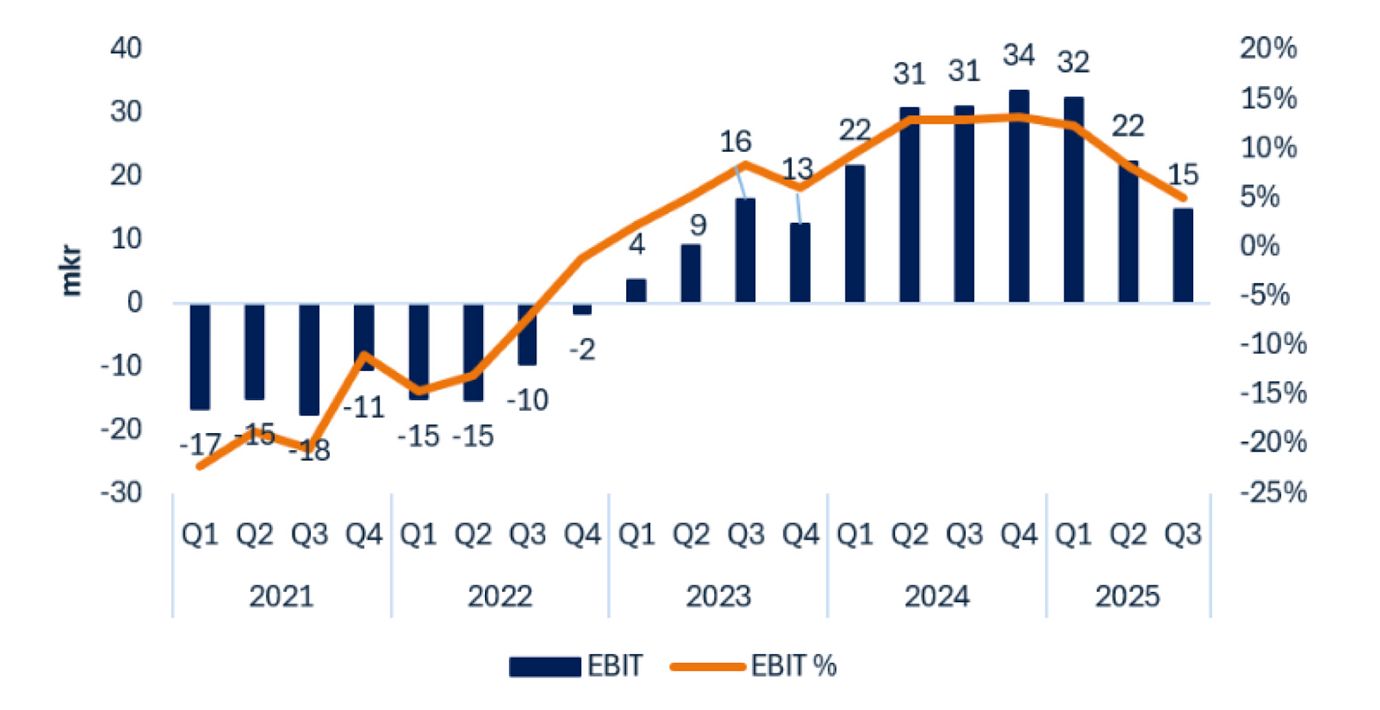 Den starka försäljningsutvecklingen har också bidragit till en vändning i rörelseresultatet, och sedan Q2 2023 redovisar Paxman vinst på EBIT-nivå. Omfattande investeringar i produktutveckling har tidigare tyngt det fria kassaflödet, men sedan Q2 2024 är bolaget även kassaflödespositivt.