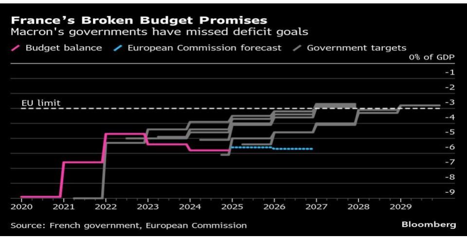 Lawmakers already forced both of Lecornu’s predecessors — Michel Barnier and Francois Bayrou — to resign over their plans to rein in what has become the largest budget deficit in the euro area. If the National Assembly forces out Lecornu later this week, Macron has told ministers it would amount to a “dissolution motion,” indicating he could dissolve parliament and call fresh elections.