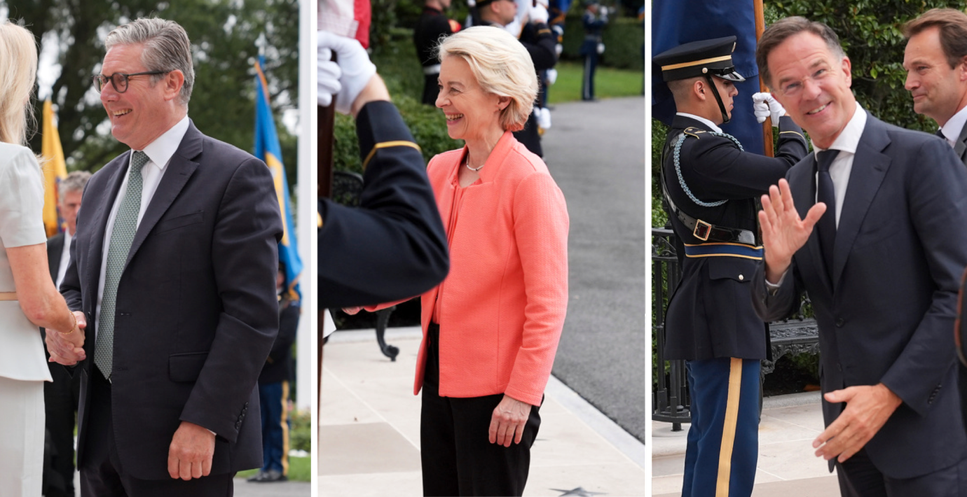 De europeiska ledarna har anlänt till Vita huset inför kvällens möte om Ukrainakriget, rapporterar amerikanska medier. De välkomnades av militärer och Vita husets protokollchef Mon…