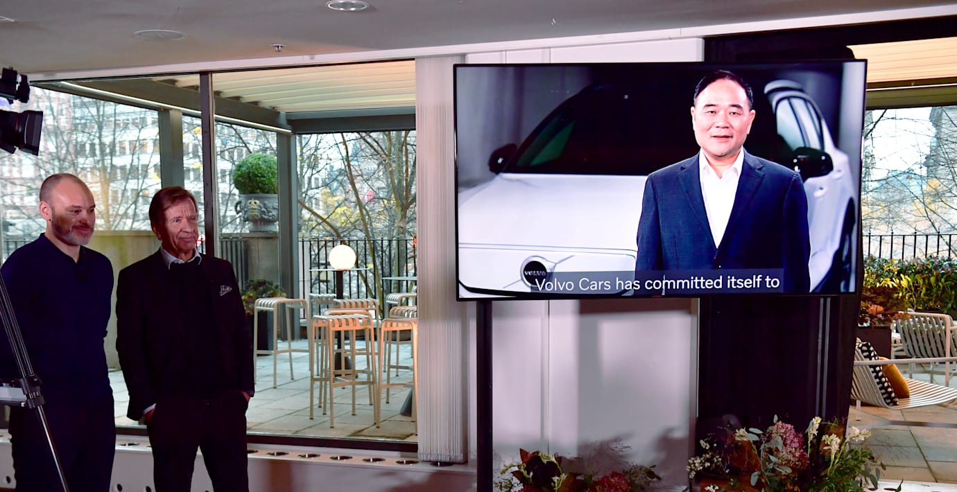 Volvo Cars storägare Li Shufu talar målande i samband med biljättens notering på Stockholmsbörsen. Volvo har de senaste tio åren skrivit om sin historia, säger Geely-grundaren, ”li…