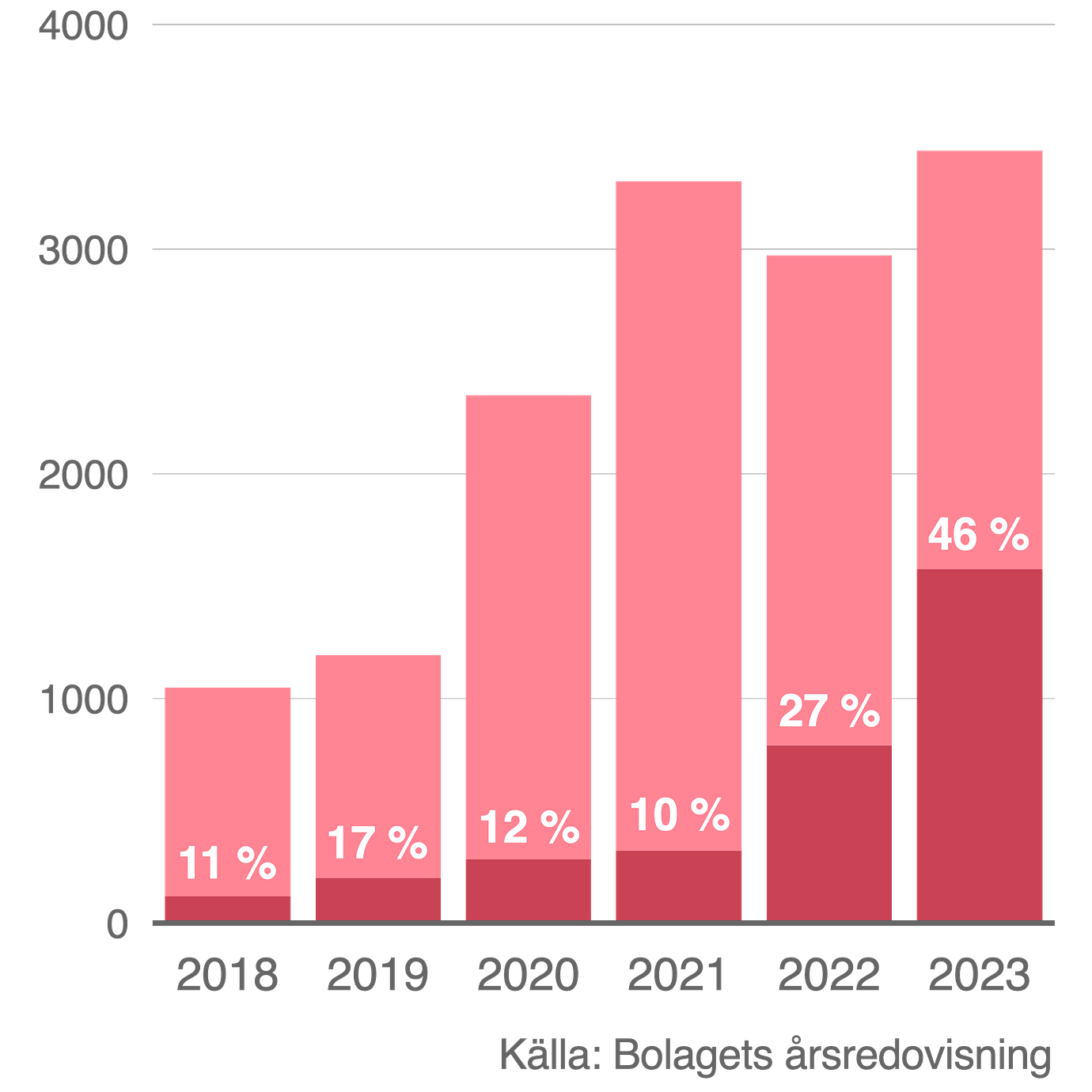 Sedan är det det här med bankfrågan nummer ett: räntenetto. Även om Avanza kanske främst förknippas med aktiehandel och courtageintäkter så är det trots allt också en bank med in- och utlåning. Inlåningen är större än utlåningen, så när räntan stack fanns det pengar att placera till högre ränta. Det har bidragit till att räntenettot gått från 10 procent av intäkterna 2021 till 45 procent 2023. Inte riktigt lika mycket som storbankernas 60–70 procent, men ändå, en aktningsvärd siffra.