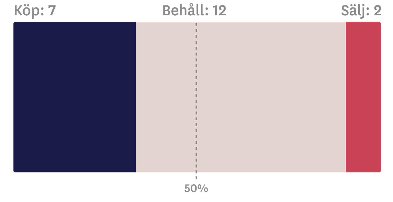 Han menar att aktien är undervärderad i sin nuvarande nivå runt 52 kronor. Det verkliga värdet anser han ligger på 95 kronor – vilket skulle innebära en uppsida på över 80 procent, även om osäkerheten i prognosen bedöms vara stor.