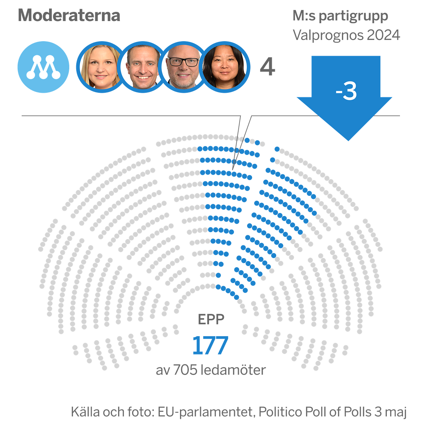 Moderaterna tillhör den kristdemokratiska och konservativa partigruppen EPP i EU-parlamentet, precis som Kristdemokraterna. Gruppen är parlamentets största och ser ut att bli ungefär lika stor efter valet.
