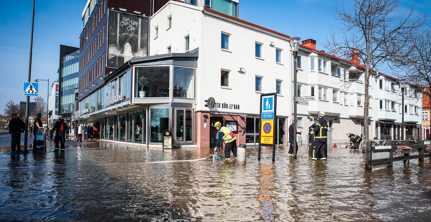 Många företag drabbades av måndagens översvämningar i Jönköping. Emilia Gustavsson och Emelie Swartz har kämpat hela eftermiddagen med att rädda utrustningen i deras skönhetssalong…