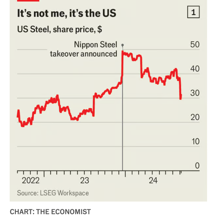 Nippon’s attempt to buy US Steel marks a watershed moment in this regard. The national-security rationale for blocking the acquisition of the steelmaker by a competitor from Japan is flimsy, and opposition to the deal has more to do with its presence in Pennsylvania, a key swing state. Bosses will have few reasons to think that future dealmaking will be treated more objectively. And so fewer of them will be rushing to get their cheque-books out.